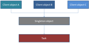 - A public static means of getting the reference to the single created instance, creating one if necessary.